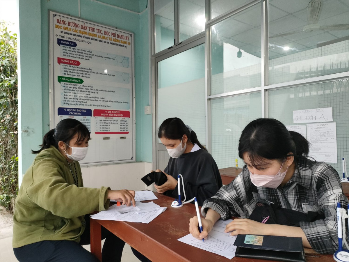 Đội hình tư vấn, hỗ trợ người dân tại Trung tâm đào tạo kỹ thuật nghiệp vụ giao thông vận tải.