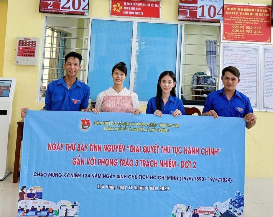 Nhằm phát huy vai trò xung kích, sáng tạo của đoàn viên, thanh niên trong cải cách thủ tục hành chính nâng cao hiệu quả hoạt động của cơ quan, đơn vị trong công tác phục vụ nhân dân. Sáng ngày 11/05/2024, Ban Thường vụ Đoàn khối chỉ đạo Đoàn cơ sở Sở tài nguyên và môi trường thành lập đội hình hướng dẫn, tư vấn, giải quyết thủ tục hành chính cho người dân tại Bộ phận một cửa Văn phòng đăng ký đất đai huyện Duyên Hải, thuộc UBND huyên Duyên Hải.