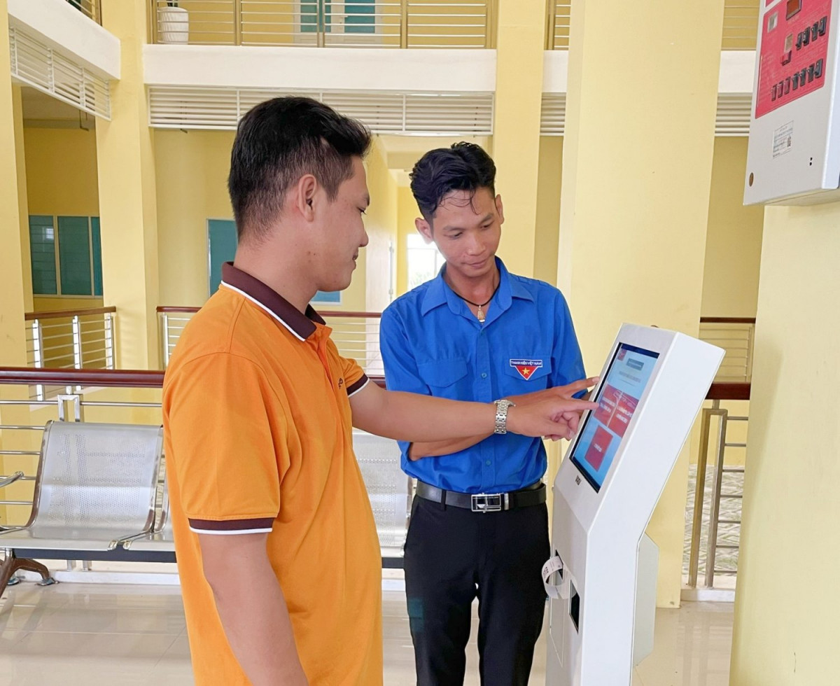 Đoàn viên hướng dẫn người dân cách đăng ký giải quyết hồ sơ