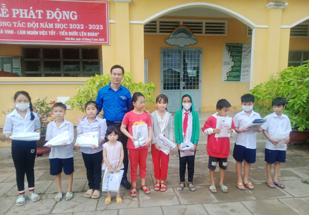 Nhằm động viên tinh thần và đồng hành với các em học sinh có hoàn cảnh khó khăn trên con đường học tập. Chiều ngày 09/01/2023, Ban Thường vụ Đoàn khối phối hợp với BGH Trường tiểu học Vinh Kim B, huyện Cầu Ngang tổ chức chương trình trao tặng đồng phục cho các em học sinh có hoàn cảnh khó khăn tại trường. Đây là hoạt động thiết thực chào mừng kỷ niệm 73 năm Ngày truyền thống học sinh, sinh viên và Hội Sinh viên Việt Nam (09/01/1950 – 09/01/2023).