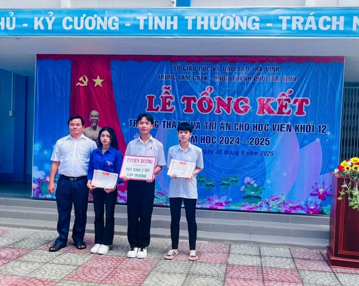 Nhằm triển khai hiệu quả chương trình công tác Đoàn và phong trào thanh thiếu niên trường học. Ngày 30/5/2025, Đoàn Trung tâm GDTX – HNDN TP. Trà Vinh đã tổ chức Lễ tuyên dương các học sinh tiêu biểu đạt danh hiệu “Học sinh 3 tốt” năm học 2024 – 2025.