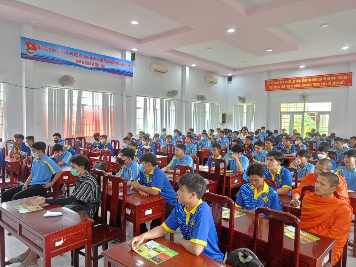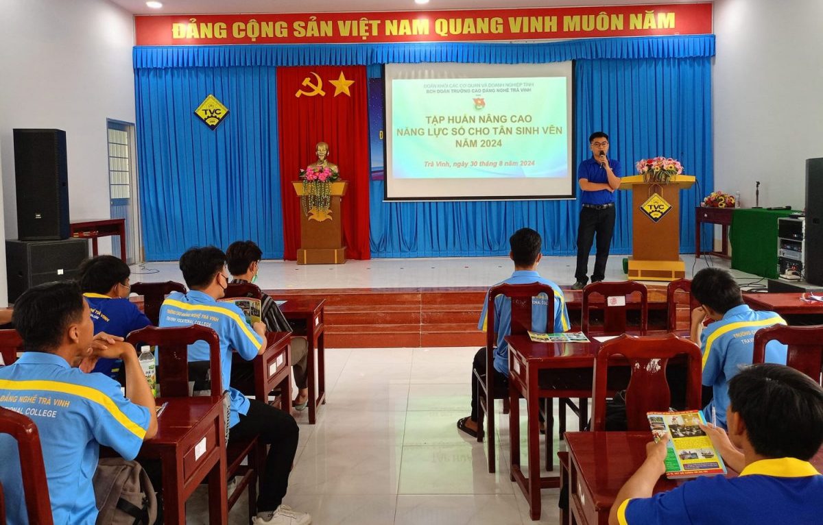 Sáng ngày 30/8/2024, tại hội trường  cơ sở 1 Trường cao đẳng nghề Trà Vinh. Ban Chấp hành Đoàn trường tổ chức tập huấn chương trình“nâng cao năng lực số cho” cho đoàn viên thanh niên là tân sinh viên của Trường. Tham dự chương trình có đồng chí Võ Hoàng Qui – Phó Bí thư Thường trực Đoàn trường Cao đẳng Nghề Trà Vinh và trên 150 đoàn viên thanh niên cùng tham dự.