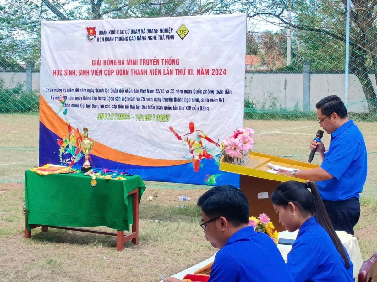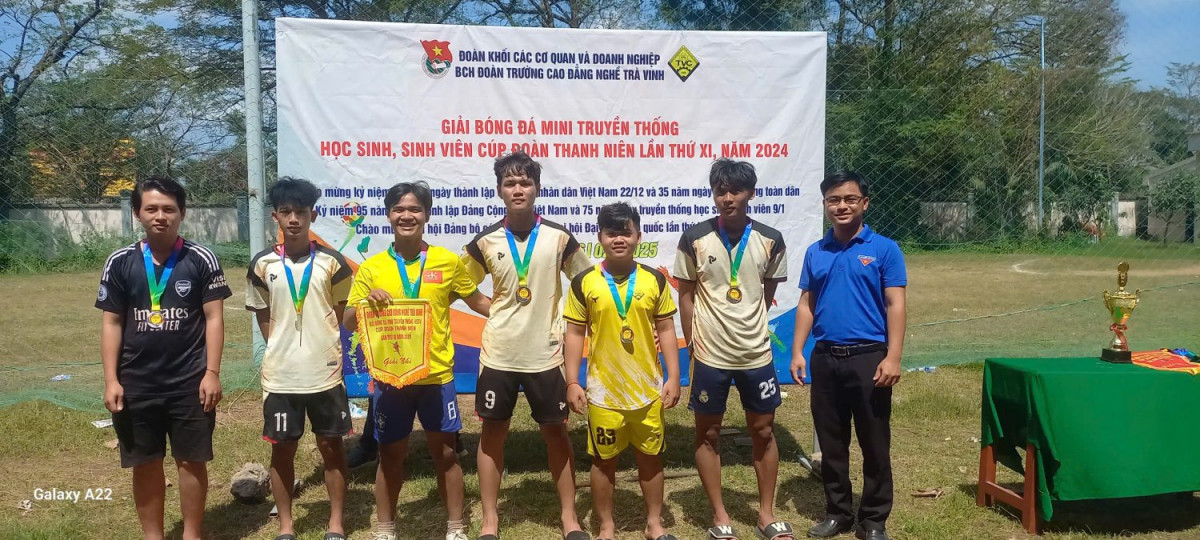 Sáng ngày 16/2/2025, tại sân bóng đá mini Trường Cao đẳng Nghề Trà Vinh đã diễn ra lễ bế mạc Giải bóng đá mini truyền thống học sinh, sinh viên Cúp ĐTN lần thứ XI. Giải đấu được tổ chức nhằm chào mừng các sự kiện lịch sử quan trọng, bao gồm 80 năm ngày thành lập Quân đội Nhân dân Việt Nam (22/12), 35 năm Ngày Quốc phòng toàn dân, 75 năm Ngày truyền thống HSSV (9/1), 95 năm Ngày thành lập Đảng Cộng sản Việt Nam, và mừng xuân Ất Tỵ 2025.