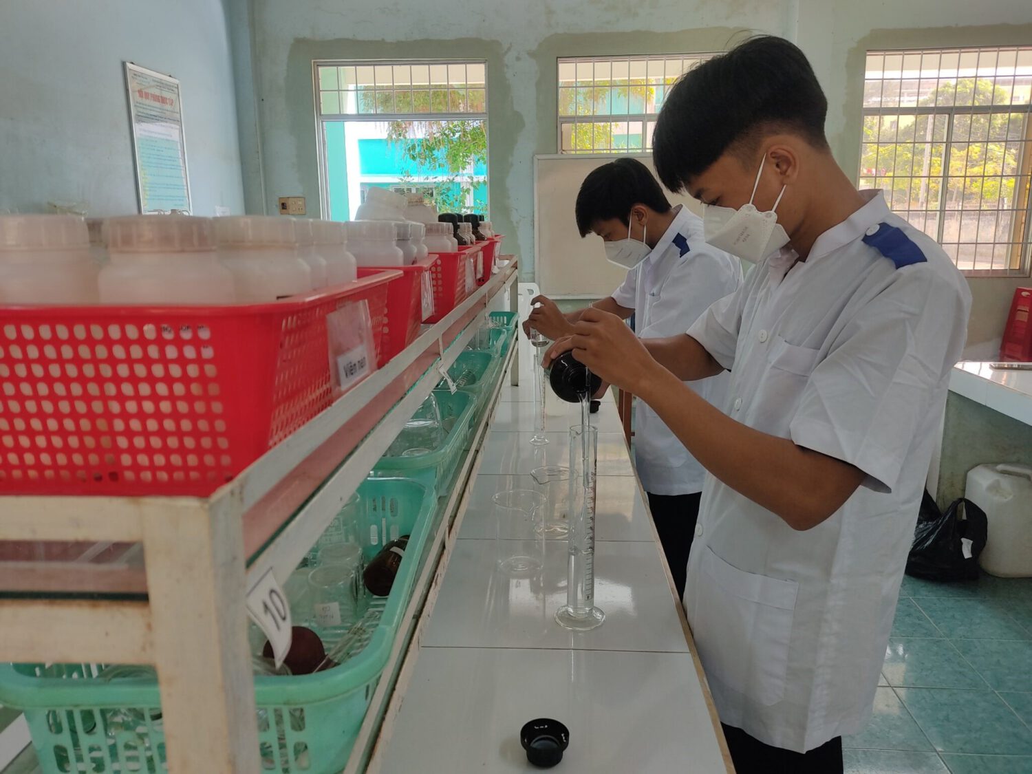 Sinh viên thực hành nghiên cứu dung dịch sát khuẩn tại trường