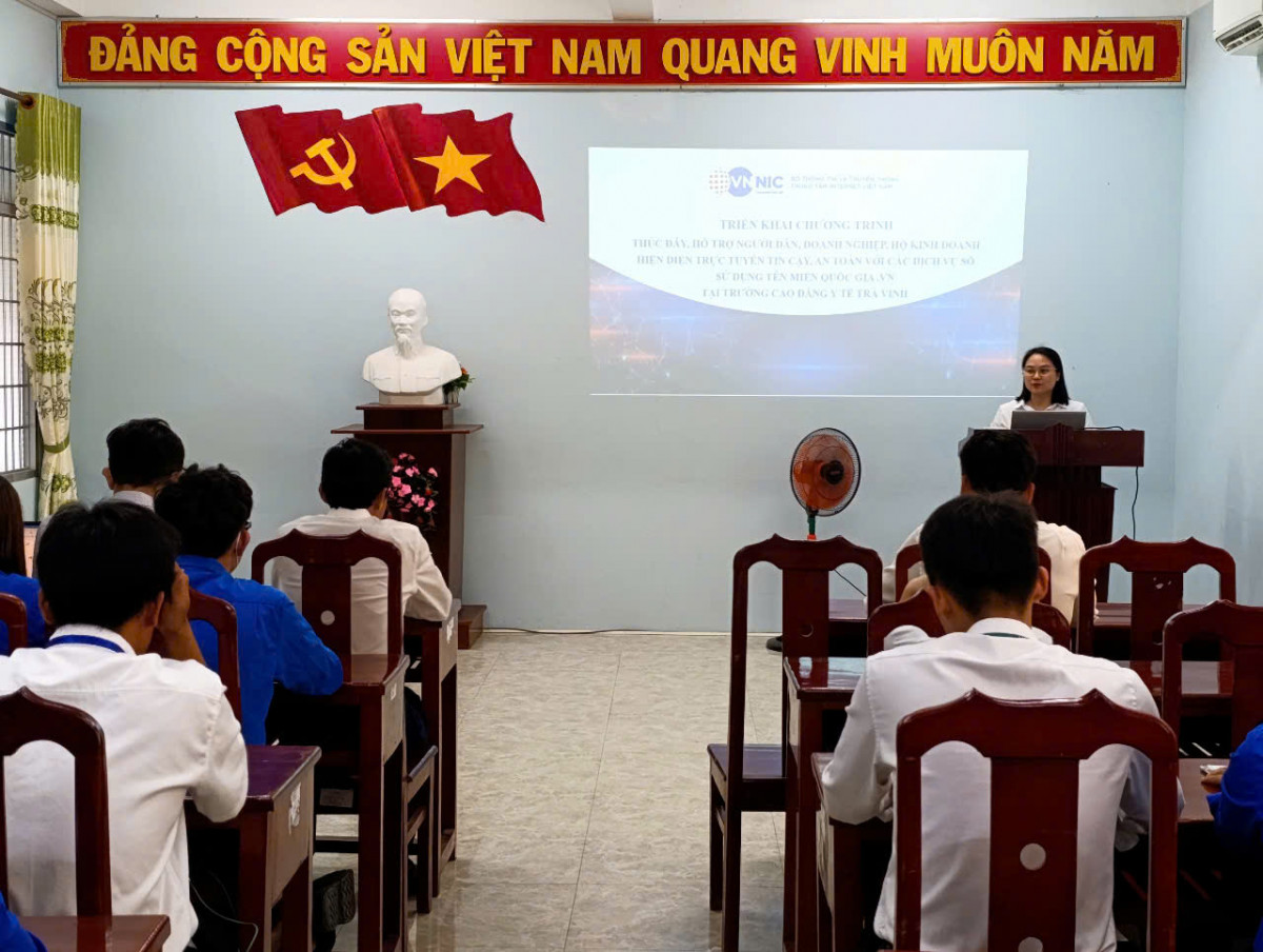 Ngày 21/02/2025, Đoàn trường Cao đẳng Y tế Trà Vinh phối hợp với Sở Thông tin và Truyền thông tỉnh Trà Vinh và Trung tâm Internet Việt Nam (VNNIC) Chi nhánh tại TP. Hồ Chí Minh tổ chức Chương trình thúc đẩy và hỗ trợ đoàn viên thanh niên sử dụng tên miền quốc gia “.vn”. Chương trình thu hút gần 100 đoàn viên, thanh niên đến từ các Chi đoàn trực thuộc Đoàn trường tham gia.