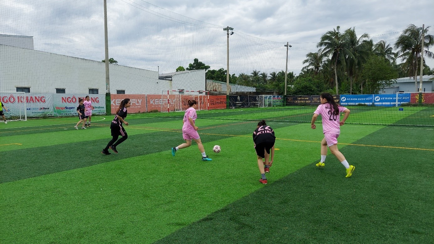 Các bạn học sinh, sinh viên tham gia nội dung giải bóng đá mini nữ