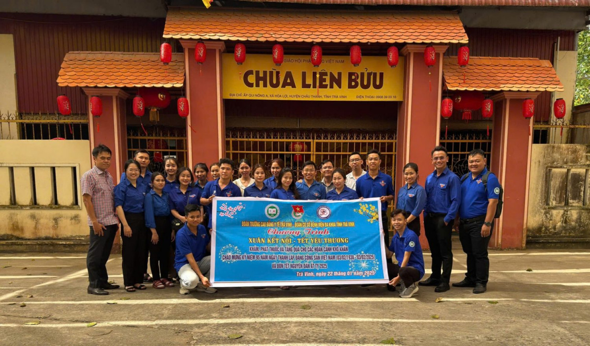 Ngày 22/01/2025, Đoàn trường Cao đẳng Y tế Trà Vinh đã phối hợp với Đoàn cơ sở Bệnh viện Đa khoa tỉnh Trà Vinh và nhóm thiện nguyện An Nhiên tổ chức một chương trình thiện nguyện ý nghĩa nhằm hỗ trợ người dân có hoàn cảnh khó khăn tại chùa Liên Bửu, xã Hòa Lợi, huyện Châu Thành, tỉnh Trà Vinh. Tham dự chương trình có 35 thành viên đến từ nhà tài trợ và các bác sĩ, dược sĩ, sinh viên chuyên ngành y tế và đội ngũ tình nguyện viên.