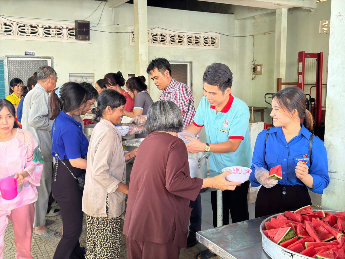 Dịp này, đoàn đã tiến hành khám bệnh và phát thuốc miễn phí cho 70 cụ già neo đơn tại nhà dưỡng lão chùa Liên Bửu. Bên cạnh đó, đoàn đã tặng các phần quà thiết thực như gạo, sữa, bánh, nhu yếu phẩm và lì xì tết. Đồng thời, tổ chức nấu một bữa cơm yêu thương cho các cụ ngay tại nhà dưỡng lão với tổng kinh phí thực hiện chương trình là 15.000.000 đồng.