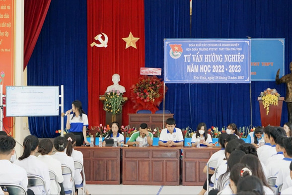 Ngày 18/3/2023, Đoàn trường Phổ thông DNT THPT tỉnh phối hợp với cựu học sinh và Chi hội sinh viên TP Trà Vinh, Châu Thành của trường Đại học Y dược Cần Thơ tổ chức chương trình tư vấn hướng nghiệp cho 135 em học sinh khối 12 của trường.