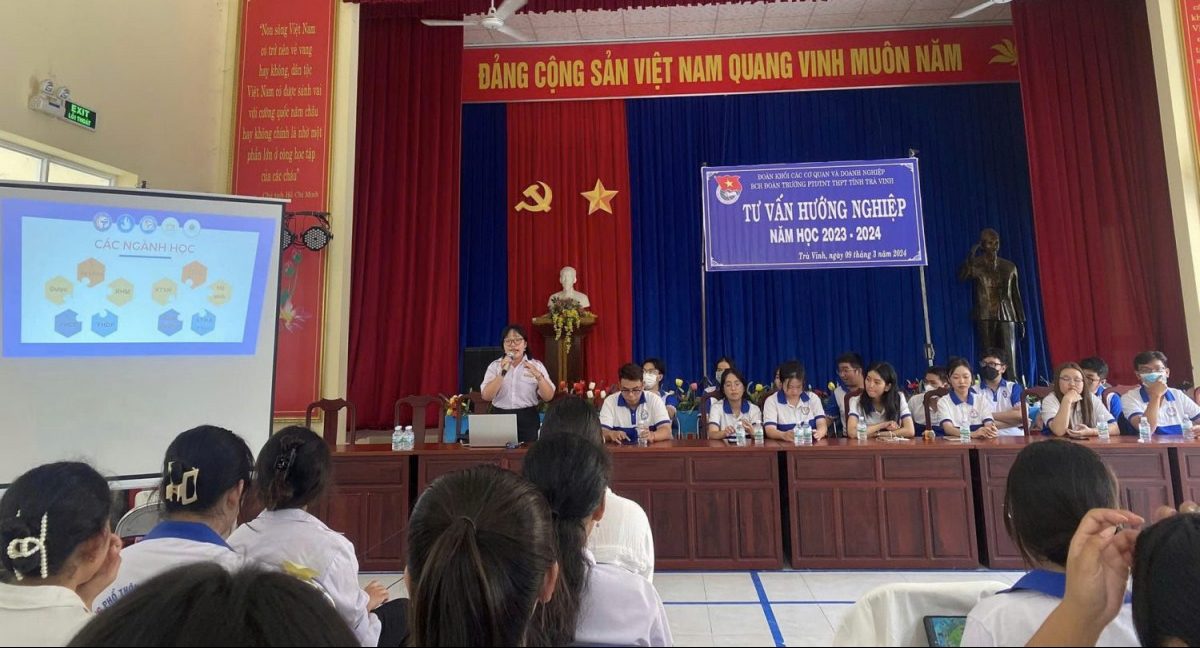 Nhằm định hướng nghề nghiệp cho các em học sinh. Sáng ngày 09/3/2024, Ban Chấp hành Đoàn trường Phổ thông DTNT – THPT tỉnh phối hợp với Chi hội sinh viên tỉnh Trà Vinh tổ chức chương trình tư vấn, hướng nghiệp cho đoàn viên thanh niên là học sinh của trường. Hoạt động thu hút trên 200 đoàn viên, thanh niên tham gia.