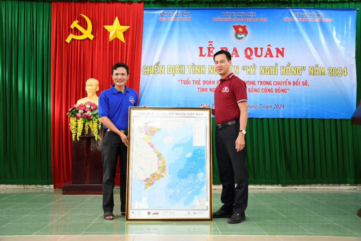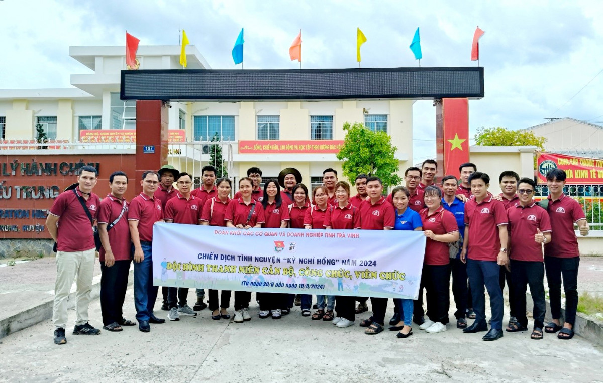 Sáng ngày 13/7/2024, tại hội trường UBND Xã Hiếu Trung, huyện Tiểu Cần. Ban Thường vụ Đoàn khối các cơ quan và doanh nghiệp tỉnh phối hợp với Đảng ủy, UBND, Xã đoàn Hiếu Trung tổ chức lễ ra quân chiến dịch tình nguyện “Kỳ nghỉ hồng” trong khối cán bộ, công chức, viên chức năm 2024. Tham dự chương trình có các đồng chí: Lữ Công Tạo – Phó Bí thư Đảng ủy khối; Nguyễn Minh Thùy – UVTV, Phó Trưởng Ban phong trào Tỉnh đoàn; Nguyễn Trọng Nhân – UVBTV Tỉnh đoàn, Bí thư Đoàn khối; Lâm Chí Trung – UVBCH Tỉnh đoàn, Phó Bí thư Thường trực Đoàn khối; Trang Văn Thẳng – Phó Bí thư Huyện đoàn Tiểu Cần; Võ Trọng Cát – Huyện ủy viên, Bí thư Đảng ủy Xã Hiếu Trung; Nguyễn Quốc Nhiệm – Đảng ủy viên, Phó Chủ tịch UBND xã, chỉ huy trưởng Ban Chỉ huy chiến dịch TNTN hè xã Hiếu Trung; cùng với 30 chiến sĩ tình nguyện “Kỳ nghỉ hồng” và người dân tại địa phương cùng tham dự.