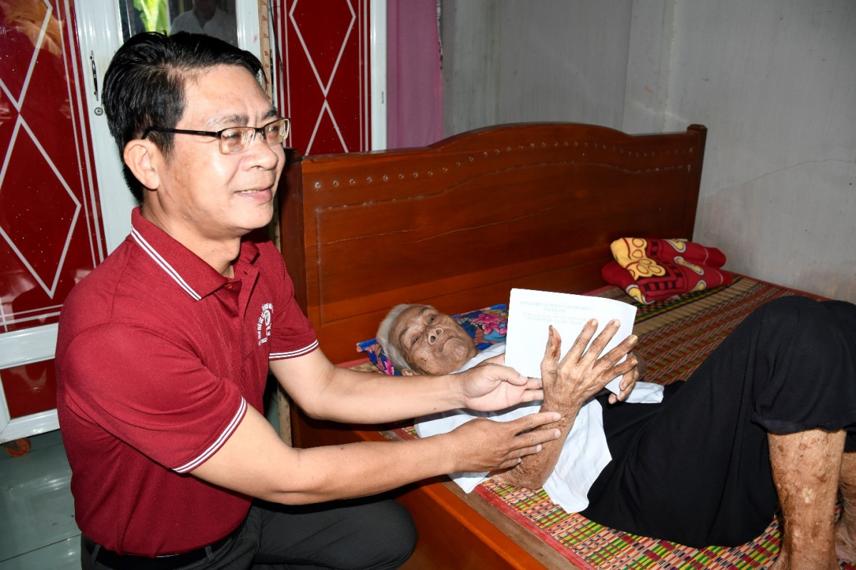 Đồng chí Lữ Công Tạo – Phó Bí thư Đảng ủy khối thăm, tặng quà Mẹ Việt Nam anh hùng Thạch Thị Xua
