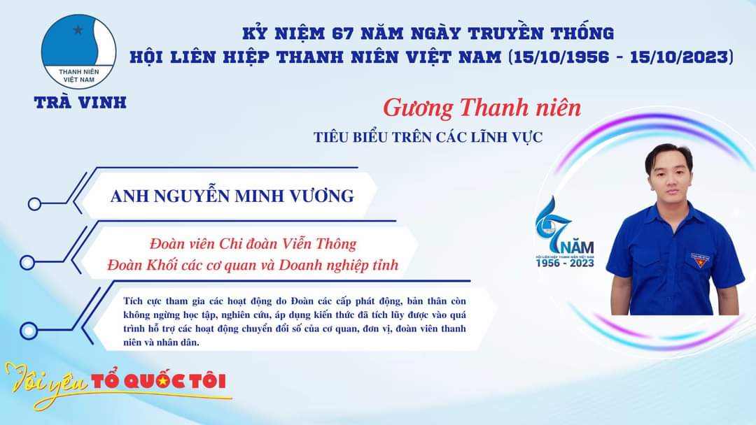 Bác Hồ – Người đã dành trọn cuộc đời, tâm huyết của mình cho sự nghiệp giải phóng dân tộc, thống nhất đất nước. Tư tưởng, đạo đức, phong cách của Người là một tấm gương sáng để cho tất cả đoàn viên, thanh niên học tập và noi theo. Hiện nay, việc học tập và làm theo tư tưởng, đạo đức, phong cách Hồ Chí Minh đã trở thành việc làm quan trọng, thường xuyên và là mục tiêu cố gắng phấn đấu của đoàn viên, thanh niên. Đồng chí Nguyễn Minh Vương – đoàn viên Chi đoàn Viễn thông Trà Vinh là một tấm gương điển hình.