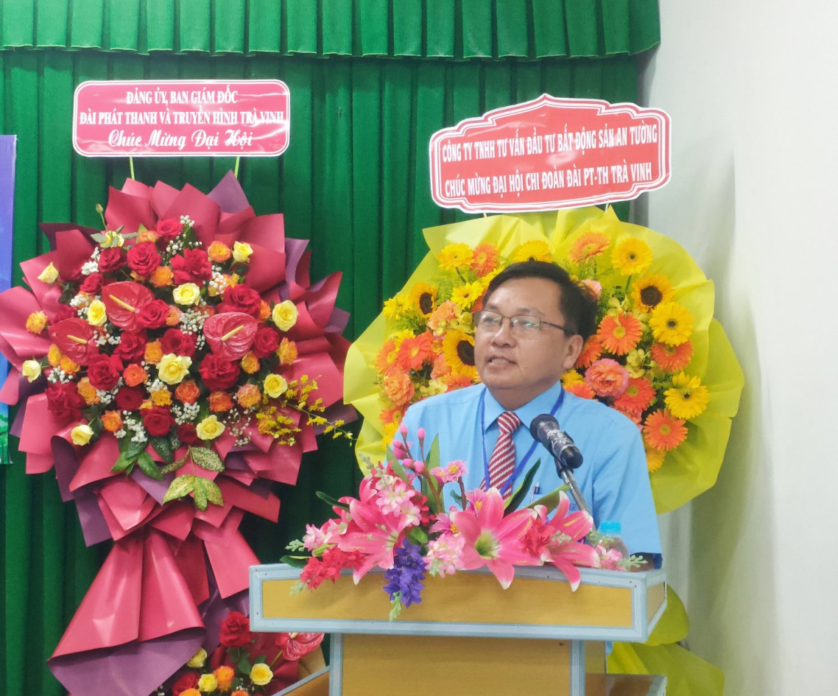 Đồng chí Tăng Chí Huấn – Tỉnh ủy viên, Bí thư Đảng ủy, Giám đốc Đài phát thanh và truyền hình phát biểu tại Đại hội
