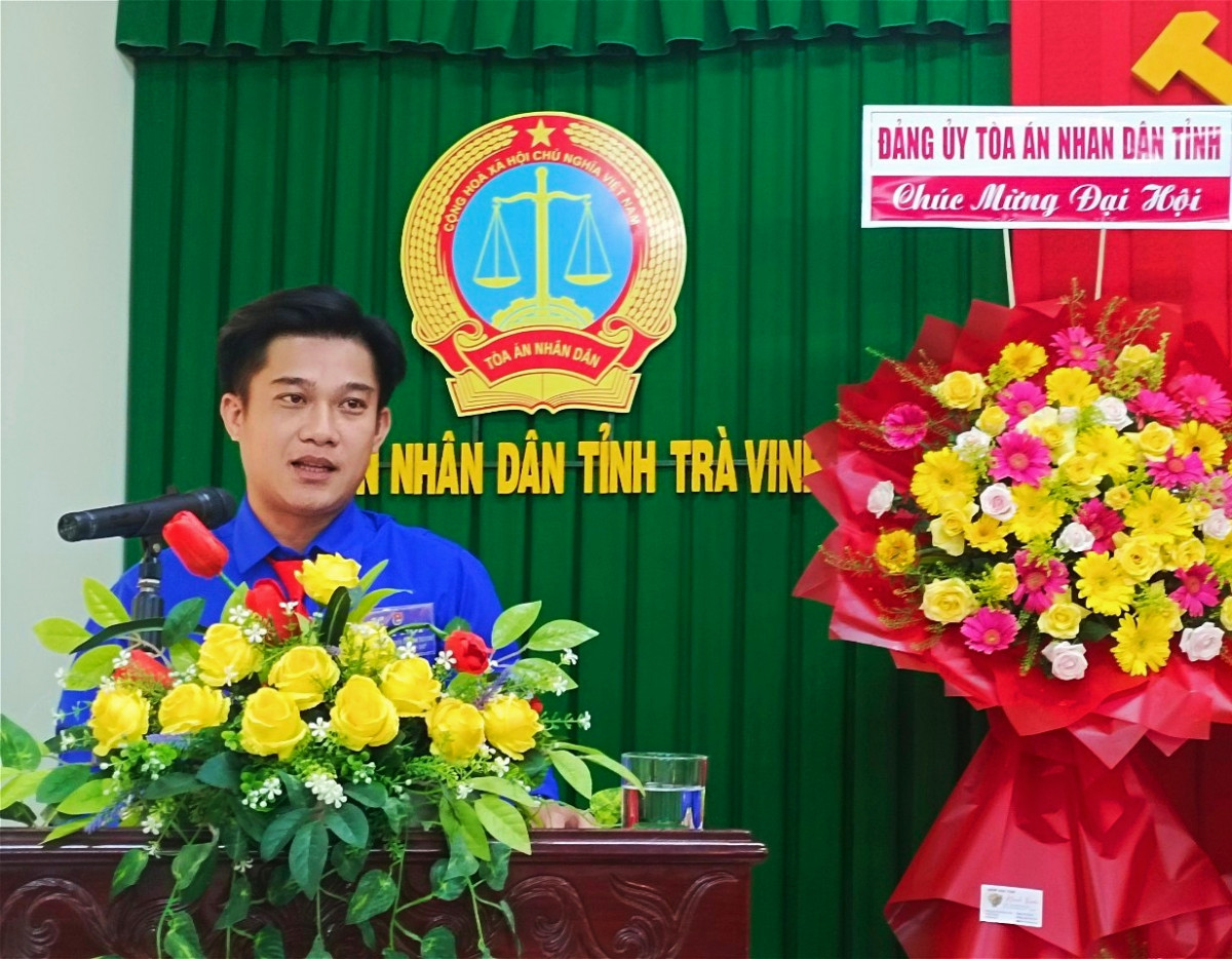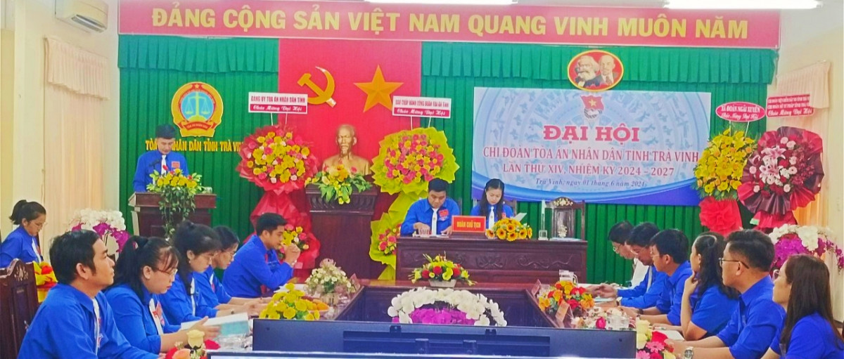 Sáng ngày 01/6/2024, Ban chấp hành Chi đoàn Tòa án nhân dân tỉnh Trà Vinh long trọng tổ chức Đại hội Chi đoàn Tòa án Nhân dân tỉnh Trà Vinh lần thứ XIV, nhiệm kỳ 2024 – 2027. Đại hội vinh dự đón tiếp đồng chí: Lâm Chí Trung – UVBCH Tỉnh đoàn, Phó Bí thư Thường trực Đoàn khối các cơ quan và doanh nghiệp tỉnh đến dự và chỉ đạo Đại hội; Ngô Đê – Ủy viên Ban cán sự Đảng, Bí thư Đảng ủy, Phó Chánh án Toà án Nhân dân tỉnh; Trịnh Hữu Bình – UVBCH Đảng ủy, Phó Chủ tịch Công đoàn, Chánh Tòa hành chính Tòa án Nhân dân tỉnh; đại diện các đơn vị kết nghĩa và 08 đại biểu chính thức tham gia Đại hội.