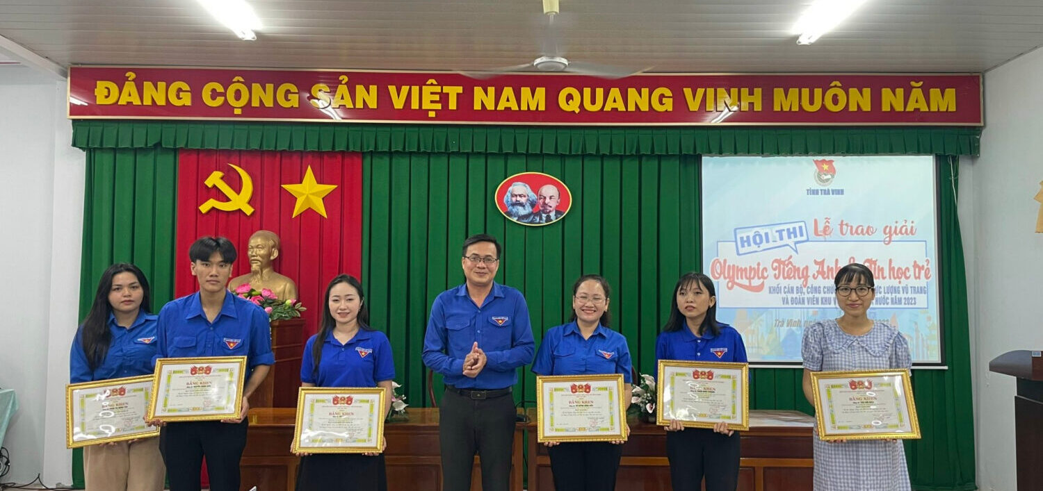 Chị Thái Kim Ngân (bìa phải) đoạt giải Nhất Hội thi Olympic tiếng anh Khối cán bộ, công chức, viên chức, lực lượng vũ trang và đoàn viên khu vực ngoài nhà nước năm 2023 do Tỉnh đoàn tổ chức