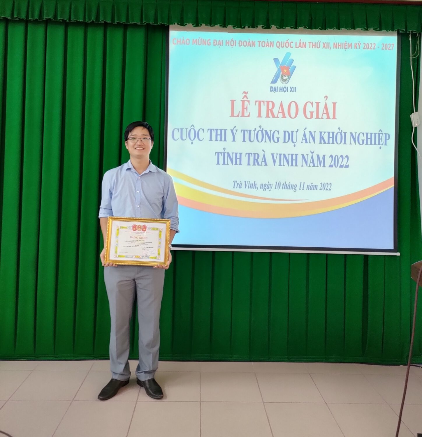 Đồng chí Tiên Đức Huy – Đoàn viên Đoàn cơ sở Sở Tài nguyên và Môi trường nhận bằng khen đoạt giải ba Cuộc thi “Ý tưởng, dự án khởi nghiệp” tỉnh Trà Vinh năm 2022