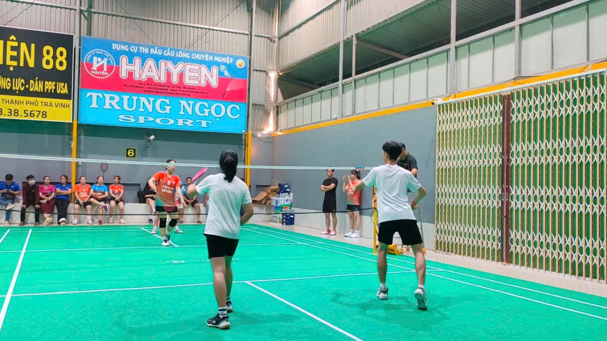 Du Bin (bên phải áo trắng) tham gia Hội thao Cán bộ Đoàn năm 2024 ở bộ môn Cầu lông đôi nam – nữ