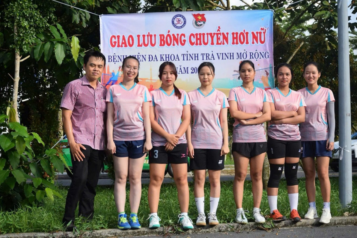 Mỹ Đình (thứ hai bên trái)- tham gia giao lưu giải bóng chuyền hơi nữ