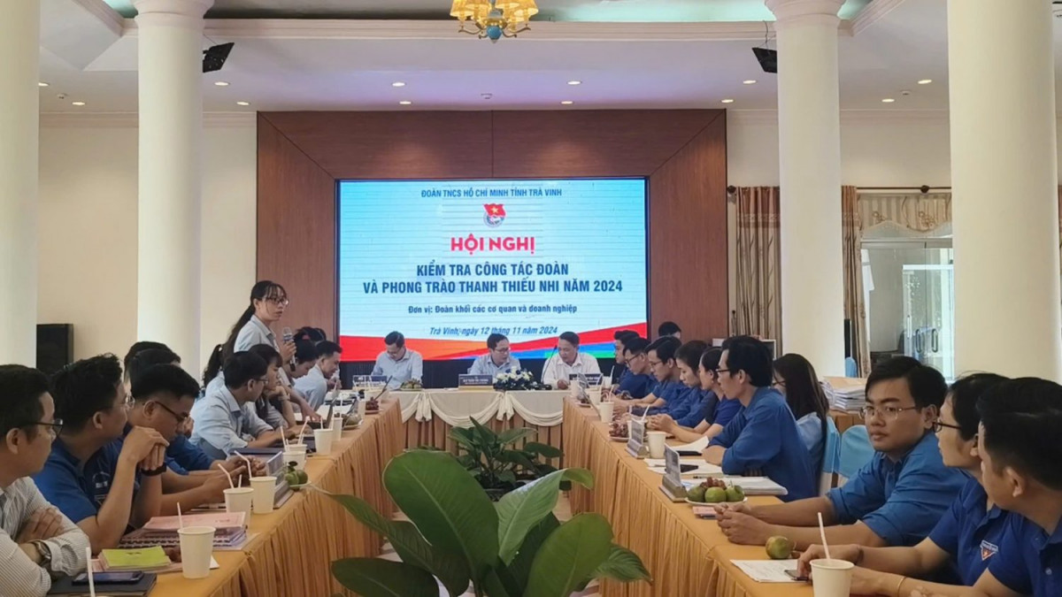 Chiều ngày 12/11/2024, tại Hội trường Khách sạn Cửu Long. Ban Thường vụ Tỉnh đoàn tổ chức Hội nghị kiểm tra Công tác Đoàn và phong trào thanh thiếu nhi năm 2024 đối với đơn vị Đoàn khối các cơ quan và doanh nghiệp tỉnh. Tham dự hội nghị có các đồng chí: Nguyễn Văn Tám – Tỉnh ủy viên, Bí thư Đảng ủy khối các cơ quan và doanh nghiệp tỉnh; Trần Trí Cường – UVBCH Trung ương Đoàn, Bí thư Tỉnh đoàn Trà Vinh, Nguyễn Thanh Nhã – Phó Bí thư Thường trực Tỉnh đoàn, Nguyễn Thị Cẩm Hương – Phó Bí thư Tỉnh đoàn, Chủ tịch Hội đồng đội tỉnh; Nguyễn Trọng Nhân – Đảng ủy viên, UVBTV Tỉnh đoàn, Bí thư Đoàn khối; các đồng chí thành viên trong Đoàn kiểm tra Tỉnh đoàn; Ủy viên Ban Thường vụ Đoàn khối; Bí thư, Phó Bí thư các cơ sở Đoàn trực thuộc Đoàn khối cùng tham dự.