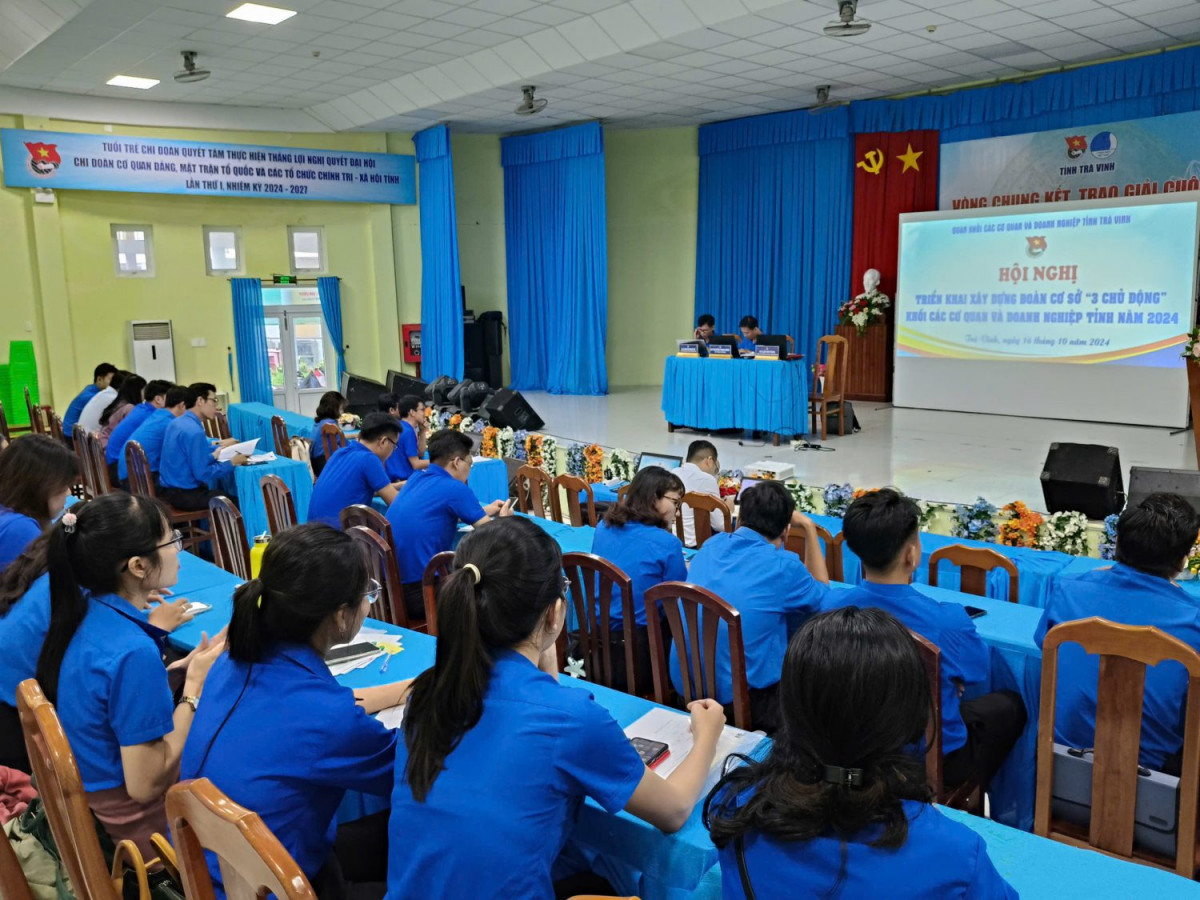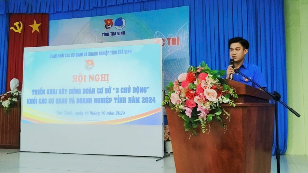 Ngày 16/10/2024, tại Hội trường Trung tâm Sinh hoạt thanh thiếu nhi tỉnh Trà Vinh, Ban Thường vụ Đoàn khối tổ chức hội nghị triển khai xây dựng Đoàn cơ sở “3 chủ động” giai đoạn 2023 – 2027 trong khối các cơ quan và doanh nghiệp tỉnh năm 2024. Tham dự Hội nghị có đồng chí Nguyễn Trọng Nhân – UVTV Tỉnh đoàn, Bí thư Đoàn khối các cơ quan và doanh nghiệp tỉnh; đồng chí Lâm Chí Trung – UVBCH Tỉnh đoàn, Phó Bí thư Thường trực Đoàn khối; đồng chí Nguyễn Minh Trí – UVBCH Tỉnh đoàn, Phó Bí thư Đoàn khối và Bí thư, Phó Bí thư các cơ sở Đoàn trực thuộc tham dự.