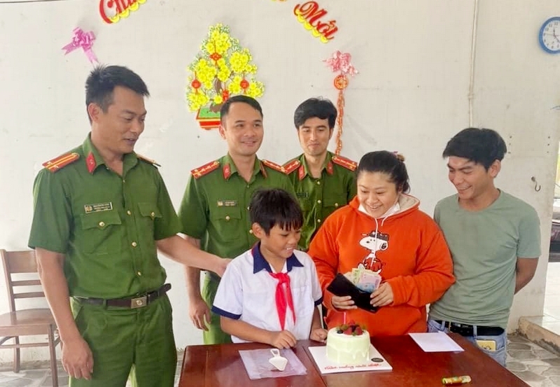 Công an xã Bình Châu và chủ tài sản tổ chức sinh nhật cho em Nguyễn Uy Hưng