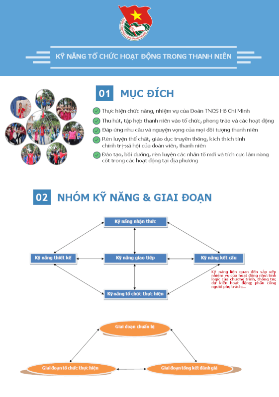 Kỹ năng tổ chức hoạt động thanh niên là một trong những đặc trưng cơ bản của người cán bộ làm công tác thanh niên. Việc vận dụng tốt các kỹ năng sẽ giúp cán bộ Đoàn thu hút, tập hợp đông đảo thanh niên vào tổ chức, các phong trào và chương trình hành động cách mạng của Đoàn, Hội.
