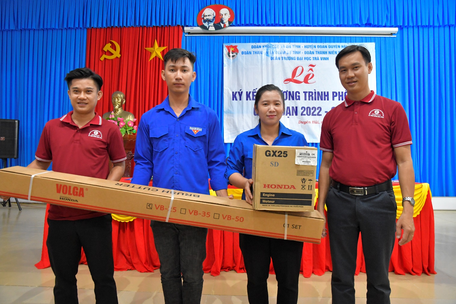 Lãnh đạo Đoàn khối Bàn giao máy cắt cỏ cho địa phương