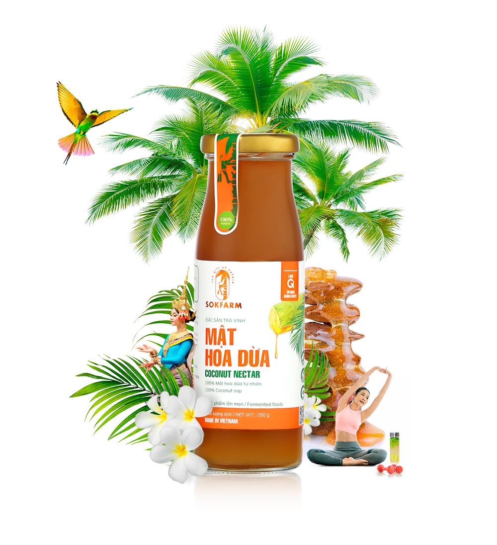 Mật hoa dừa là một sản phẩm tinh túy, được thu thủ công từ những hoa dừa (KHÔNG PHẢI MẬT ONG), bằng các kỹ thuật mát-xa hoa và thu mật truyền thống của người Khmer tại Trà Vinh. Mật hoa dừa là sản phẩm giàu khoáng chất, thuần tự nhiên và có chỉ số đường huyết thấp, rất phù hợp với trẻ nhỏ, cung cấp năng lượng ổn định cho người tiểu đường, ăn kiêng, ăn chay, chơi thể thao và bảo vệ sức khỏe.