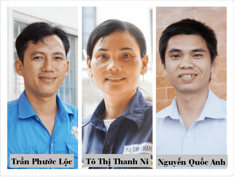 * Chị Tô Thị Thanh Ni, Tổ Vệ sinh môi trường, Công ty cổ phần Công trình đô thị Trà Vinh: Hoàn thành chương trình THPT, thay vì tiếp tục bước vào bậc đại học, Thanh Ni gửi hồ sơ xin việc làm tại Công ty Công trình đô thị Trà Vinh, nay là Công ty cổ phần Công trình đô thị Trà Vinh. Được công ty tiếp nhận vào làm việc từ năm 2002 và Thanh Ni gắn bó luôn đến nay.
