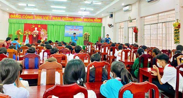 Đặc biệt, trong đợt 3 Đoàn đã phối hợp tổ chức tập huấn phòng, chống đuối nước, tai nạn thương tích cho các em học sinh tại Trường THCS Long Hiệp.