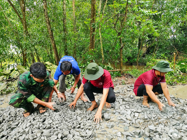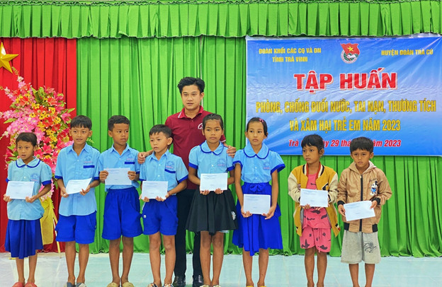Dịp này, Đoàn khố trao 10 suất học bổng cho các em học sinh có hoàn cảnh khó khăn tại xã (mỗi suất trị giá 500.000 đồng); trao tặng 10 thùng bánh Green Food (do Công ty TNHH MTV Xổ số kiến thiết tỉnh Trà Vinh hỗ trợ); ra quân thực hiện vệ sinh cảnh quan môi trường, tiến hành đổ cát, rãi đá nâng cấp tuyến đường giao thông nông thôn tại Ấp Giồng Tranh B với chiều dài 300 mét. Được biết, đây là tuyến đường đã xuống cấp, đường lầy gây ảnh hưởng đến việc di chuyển của bà con nhất là vào mùa mưa.