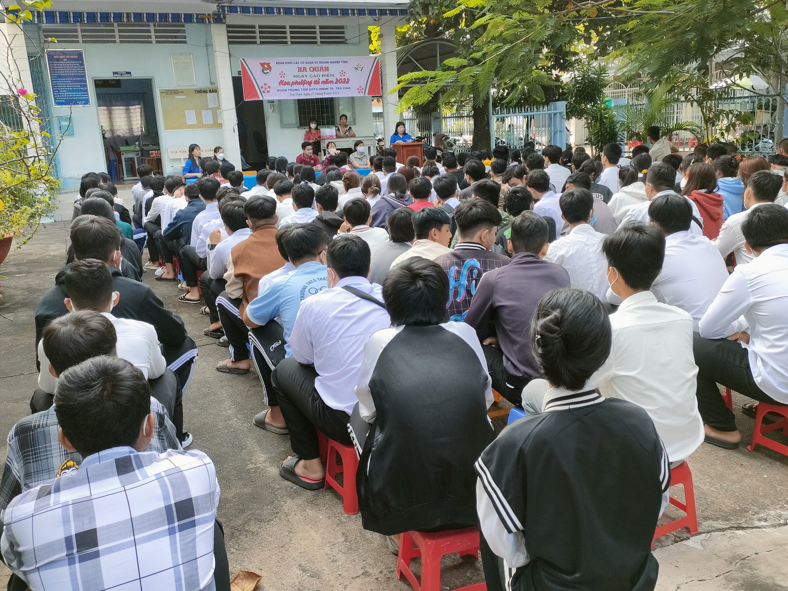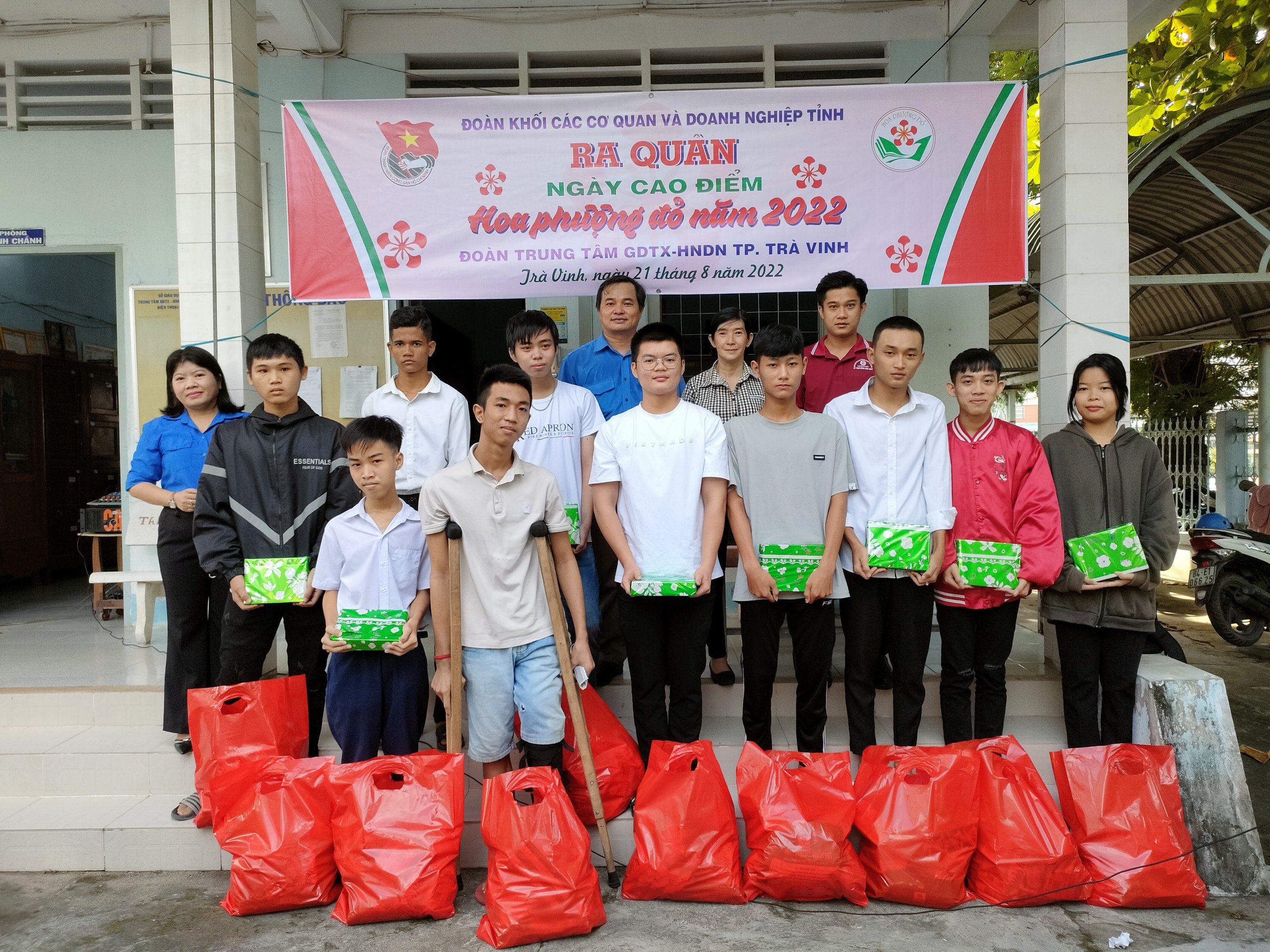 Thực hiện sự chỉ đạo của Trung ương Đoàn, Ban Thường vụ Tỉnh đoàn. Sáng ngày 21/8/2022, Ban Thường vụ Đoàn khối các cơ quan và doanh nghiệp tỉnh chọn Đoàn Trung tâm GDTX – HNDN thành phố Trà Vinh làm điểm ra quân thực hiện Ngày hội chiến sỹ Hoa phượng đỏ năm 2022. Tại đây, Ban Thường vụ Đoàn khối đa trao tặng 10 phần quà cho các bạn học viên có hoàn cảnh khó khăn (mỗi phần quà trị giá 300.000 đồng). Ngoài ra, các bạn học viên còn thực hiện vệ sinh cảnh quan trong khuôn viên trường để chào mừng năm học mới, thu gom rác thải; bóc xóa bảng quảng cáo trên tuyến đường Quang Trung, tp Trà Vinh,…