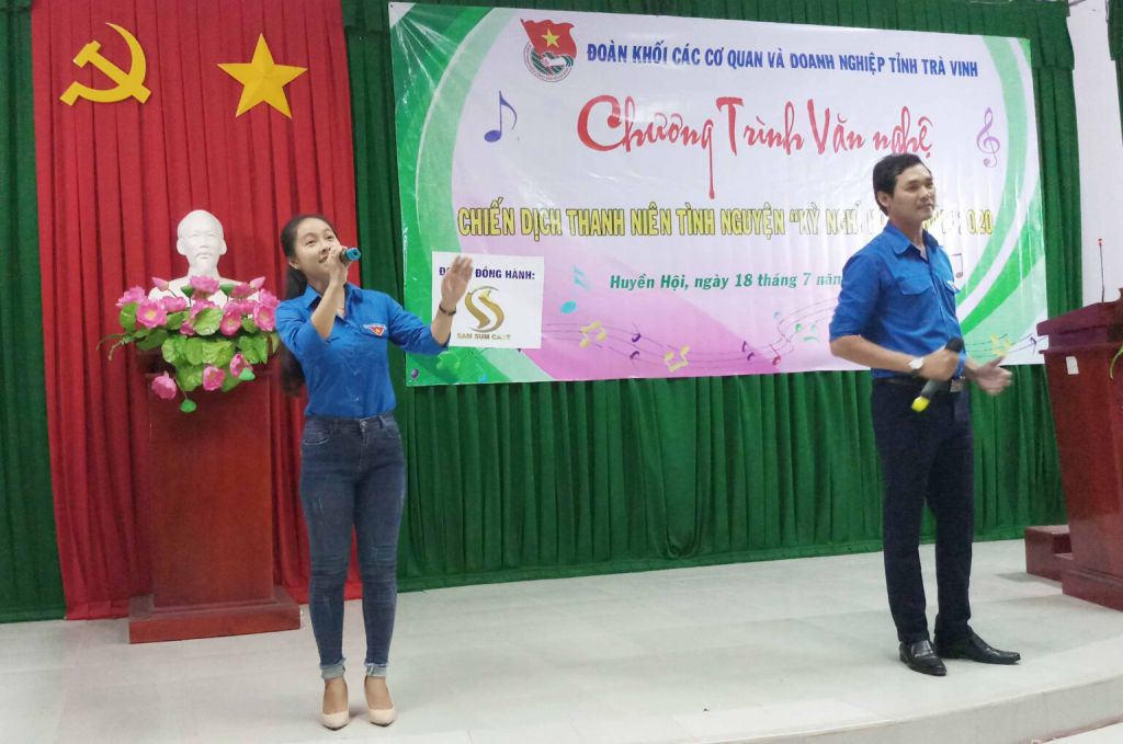 Tham dự chương trình văn nghệ có đồng chí Trần Văn Bồi – Bí thư Đảng bộ khối các cơ quan và Doanh nghiệp tỉnh; đồng chí Phan Trường Khoa – Bí thư Đảng bộ xã Huyền Hội; đồng chí Phạm Viết Thạch – UVBCH, Phó Trưởng ban Tuyên giáo Đảng bộ khối các cơ quan và Doanh nghiệp tỉnh; đồng chí Nguyễn Trọng Nhân – UVTV Tỉnh đoàn, Bí thư Đoàn khối các cơ quan và Doanh nghiệp tỉnh; Đại diện Ban Thường vụ Huyện đoàn Càng Long, Đại diện lãnh đạo UBND xã Huyền Hội; Xã đoàn Huyền Hội và trên 100 người dân, đoàn viên thanh niên, cán bộ, chiến sĩ thanh niên tình nguyện “Kỳ nghỉ hồng” hai đơn vị tham dự.