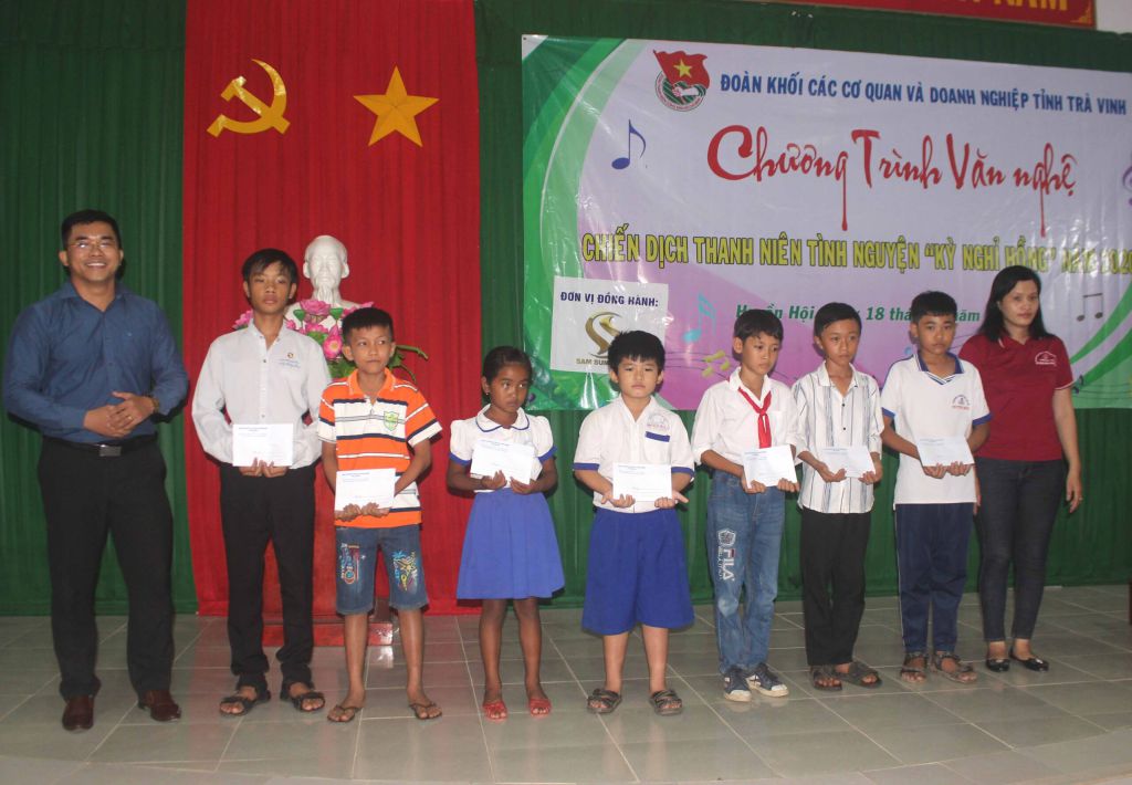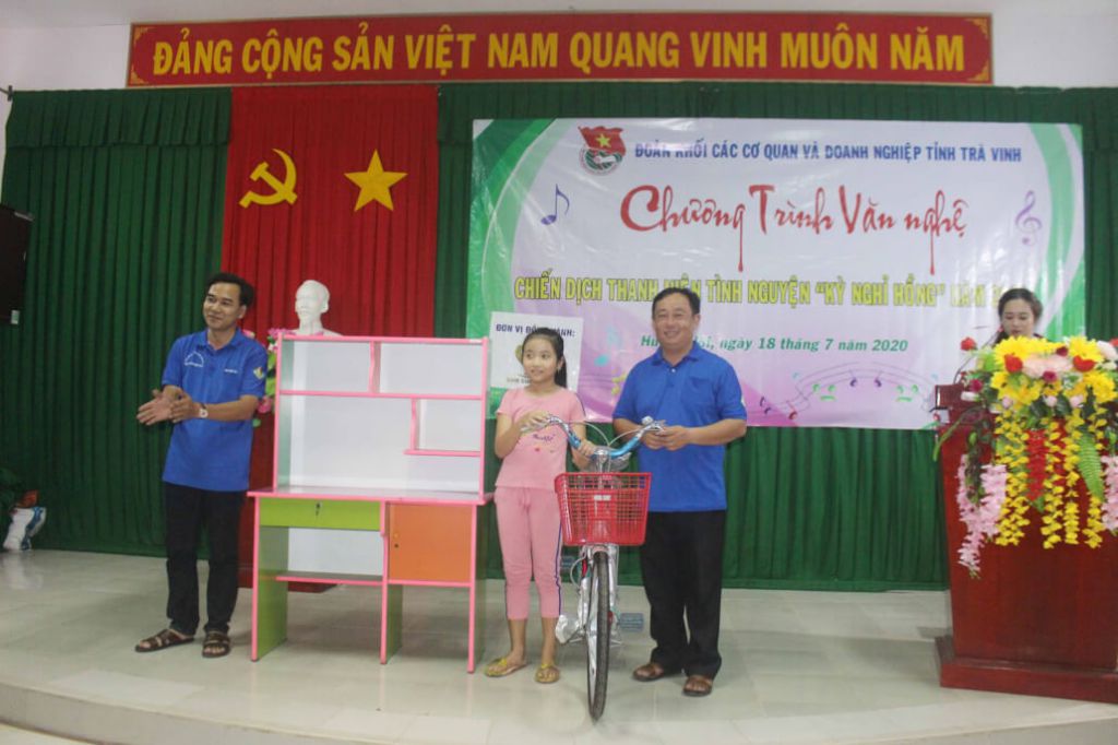 Dịp này, Ban Tổ chức Chiến dịch thanh niên tình nguyện “Kỳ nghỉ hồng” Khối các cơ quan và doanh nghiệp tỉnh tặng 10 phần quà gia đình chính sách (mỗi xuất 500.000đ); 10 suất học bổng (mỗi xuất 300.000đ); 01 xe đạp; 01 góc học tập trị giá 2.000.000 đồng cho các em học sinh nghèo hiếu học tại các xã với trị giá 03 triệu đồng.