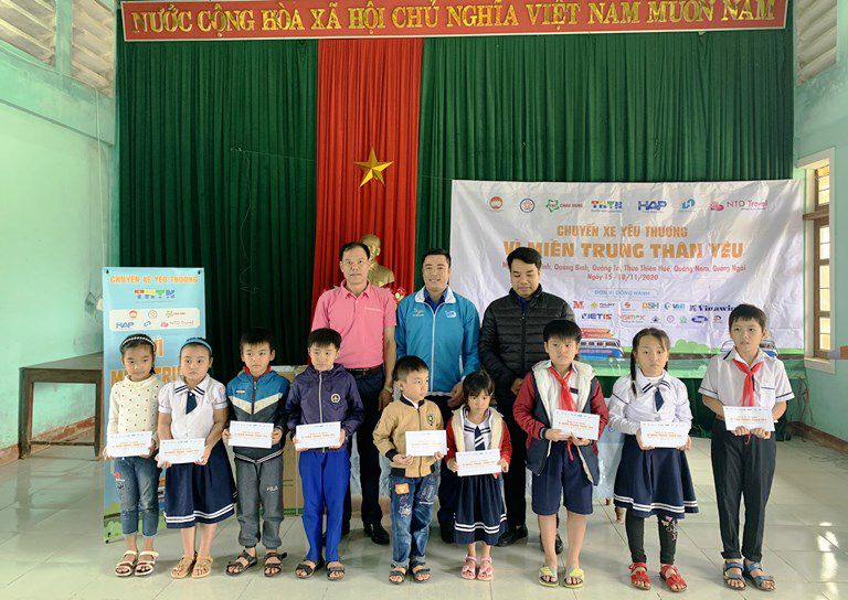 Ngày 16/11, chương trình “Chuyến xe yêu thương – vì miền Trung thân yêu” đã đến với Quảng Trị và trao tặng 01 máy lọc nước, 01 kèn đội, 03 bộ trống đội, 5.000 quyển vở cho Trường Tiểu học Triệu Thành; trao học bổng cho 20 em học sinh có hoàn cảnh khó khăn của huyện Triệu Phong, mỗi suất học bổng trị giá 01 triệu đồng; thăm, trao quà cho 02 gia đình khó khăn bị ảnh hưởng bão lũ tại xã Triệu Thành, huyện Triệu Phong, mỗi suất quà trị giá 02 triệu đồng.