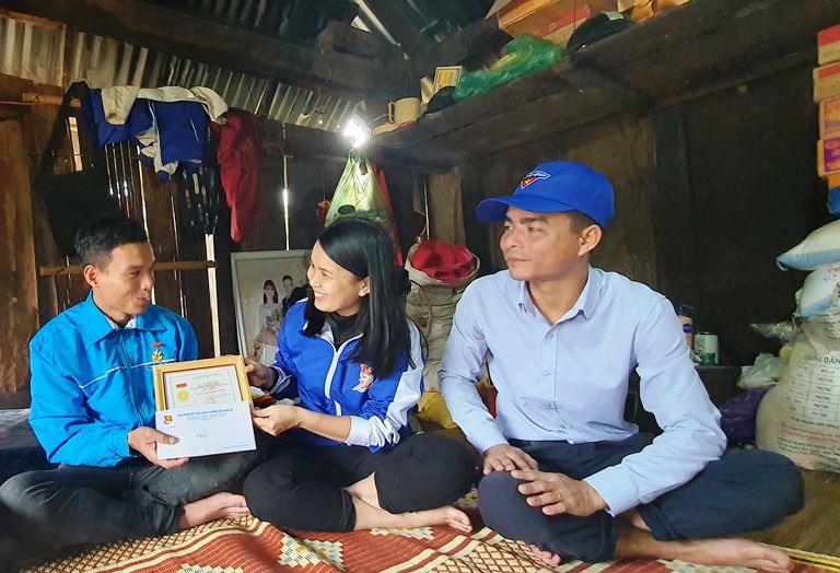 Sáng cùng ngày, Đoàn trao tặng 100 suất quà, mỗi suất quà trị giá 500 nghìn đồng cho các gia đình có hoàn cảnh khó khăn tại thôn Nhật Lệ, xã Cam Thủy, huyện Cam Lộ. Tổng trị giá các hoạt động gần 135 triệu đồng.