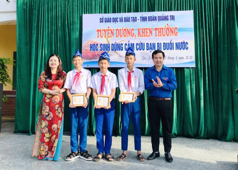 Cũng trong chương trình, Giám đốc Sở Giáo dục và Đào tạo tỉnh Quảng Trị đã trao tặng Giấy khen kèm 500 nghìn đồng tiền thưởng để động viên hành động dũng cảm của 03 đội viên nói trên.