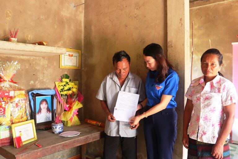 Truy tặng huy hiệu “Tuổi trẻ dũng cảm” của Ban chấp hành Trung ương Đoàn TNCS Hồ Chí Minh cho em Hồ Thị Thoan (sinh năm 1997, người dân tộc Bru-Vân Kiều, trú tại bản Khe Khế, xã Kim Thủy, huyện Lệ Thủy (Quảng Bình) không may tử vong khi đang cứu 1 em nhỏ trong bản bị đuối nước