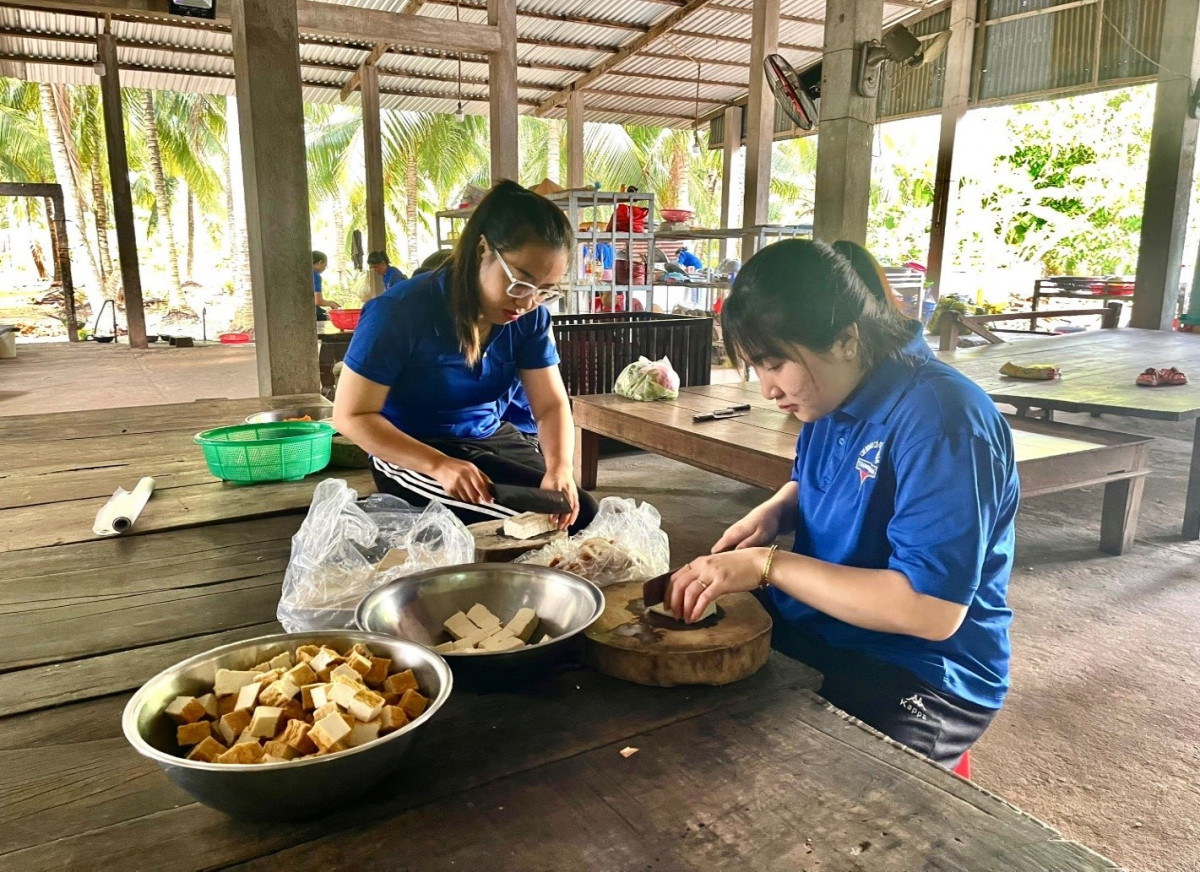Tại đây các bạn đoàn viên chi đoàn đã thăm hỏi, động viên sức khoẻ và tổ chức nấu 50 suất ăn cho các cụ tại Chùa. Bên cạnh đó, các bạn đoàn viên còn tiến hành dọn dẹp, vệ sinh khuôn viên tại khu vực nhà dưỡng lão và khuôn viên Chùa Liên Bửu.