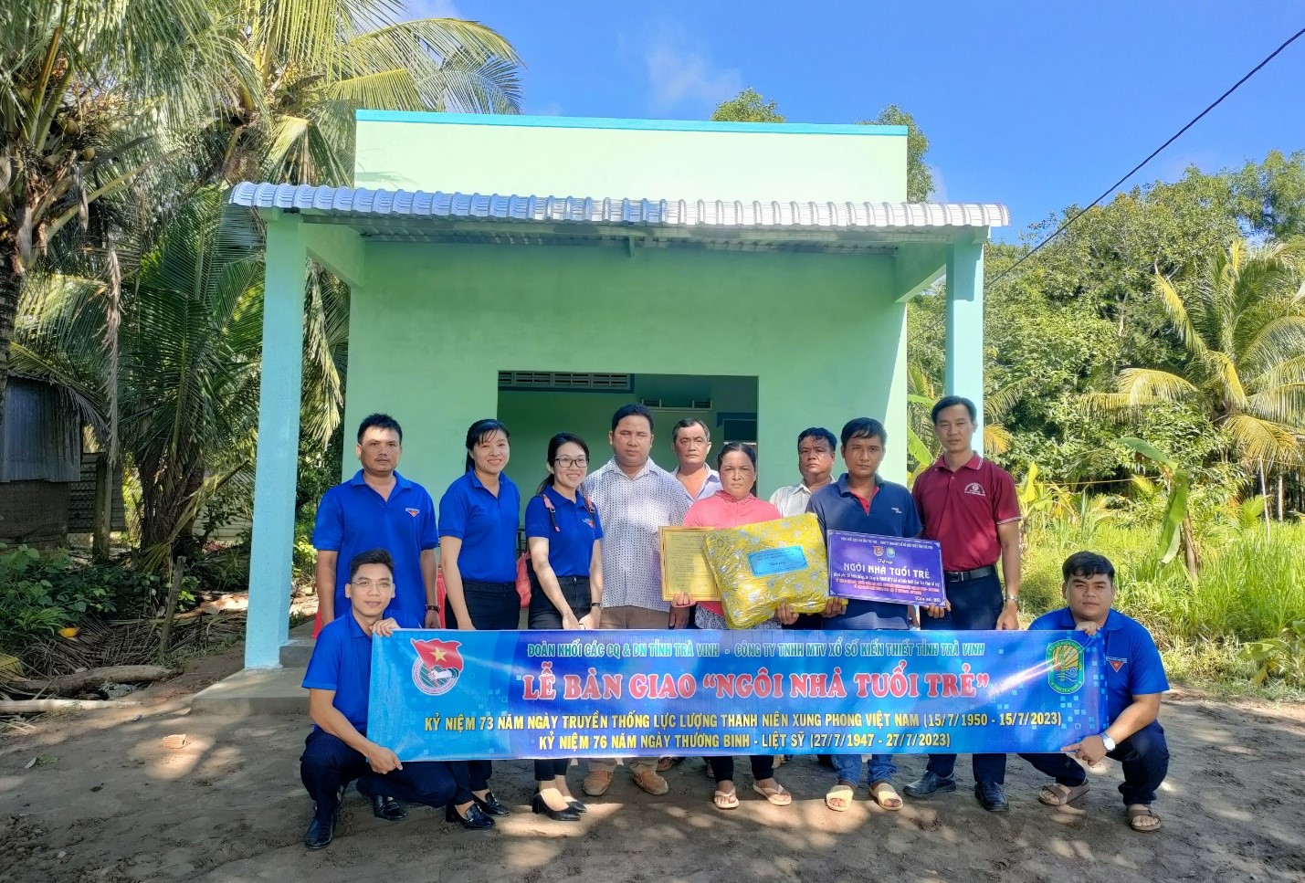 Sáng ngày 23/7/2023, Ban Thường vụ Đoàn khối phối hợp với Huyện đoàn Trà Cú, lãnh đạo địa phương tiến hành bàn giao “Ngôi nhà Tuổi trẻ” (căn thứ năm) cho Chị Kim Thị Na ngụ tại ấp Sóc Ruộng, xã Tân Hiệp, huyện Trà Cú.