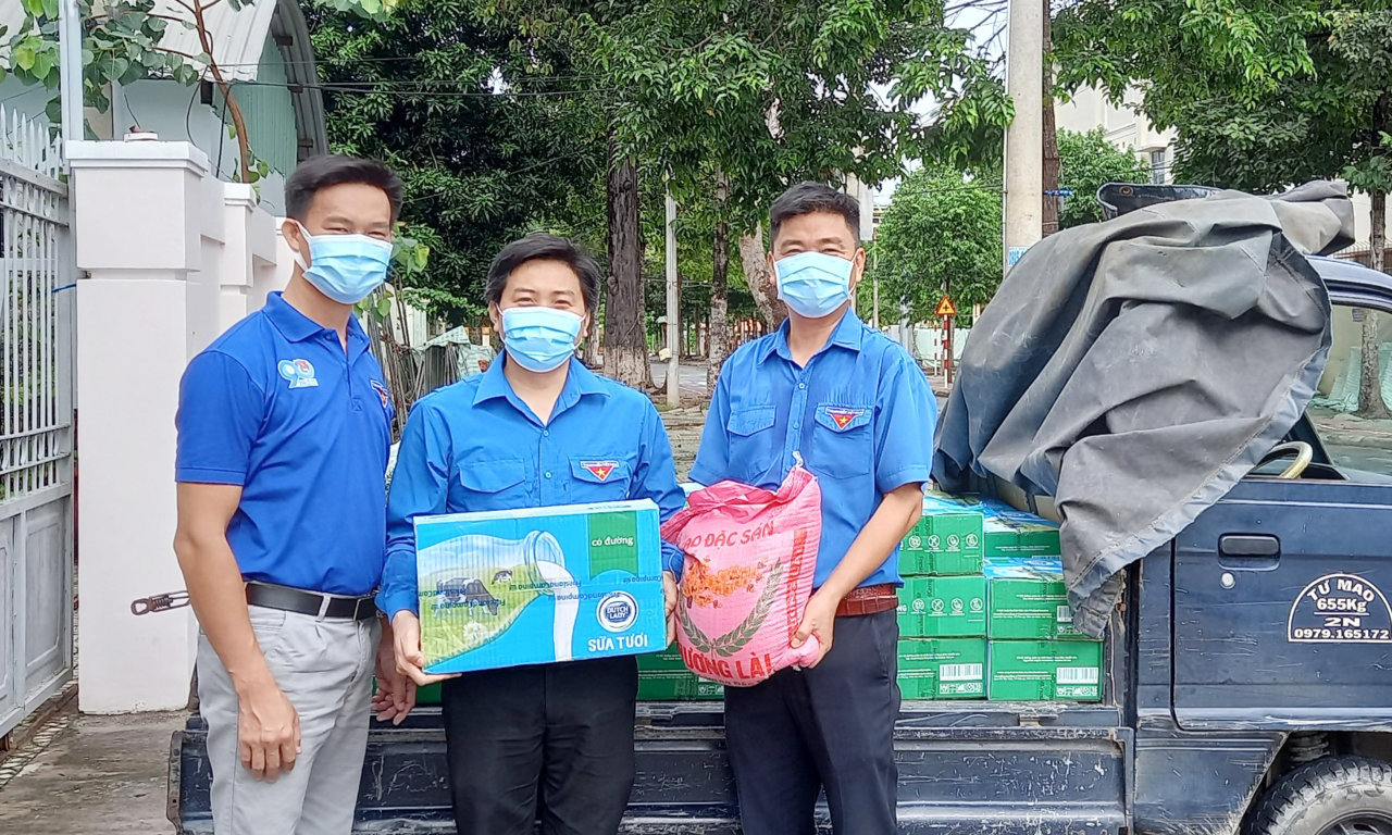 Hưởng ứng chương trình “San sẻ yêu thương, chung tay vượt qua đại dịch”  do Trung ương Đoàn phát động. Sáng 25/8/2021, Ban Thường vụ Đoàn khối các cơ quan và doanh nghiệp tỉnh tổ chức trao, tặng quà cho thanh niên công nhân đang làm việc tại các công ty, Khu chế xuất trong khu công nghiệp Long Đức, Thành phố Trà Vinh.