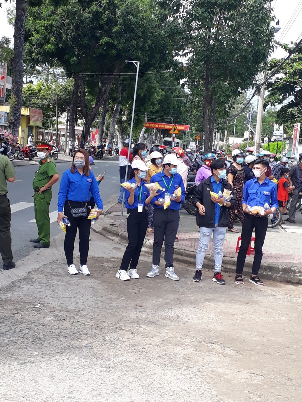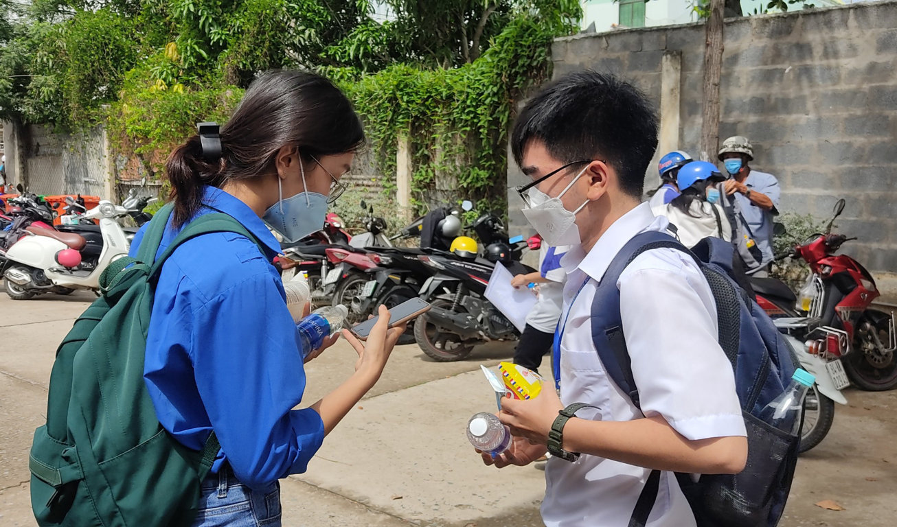 Các tình nguyện viên phát nước, bánh mì miễn phí cho thí sinh