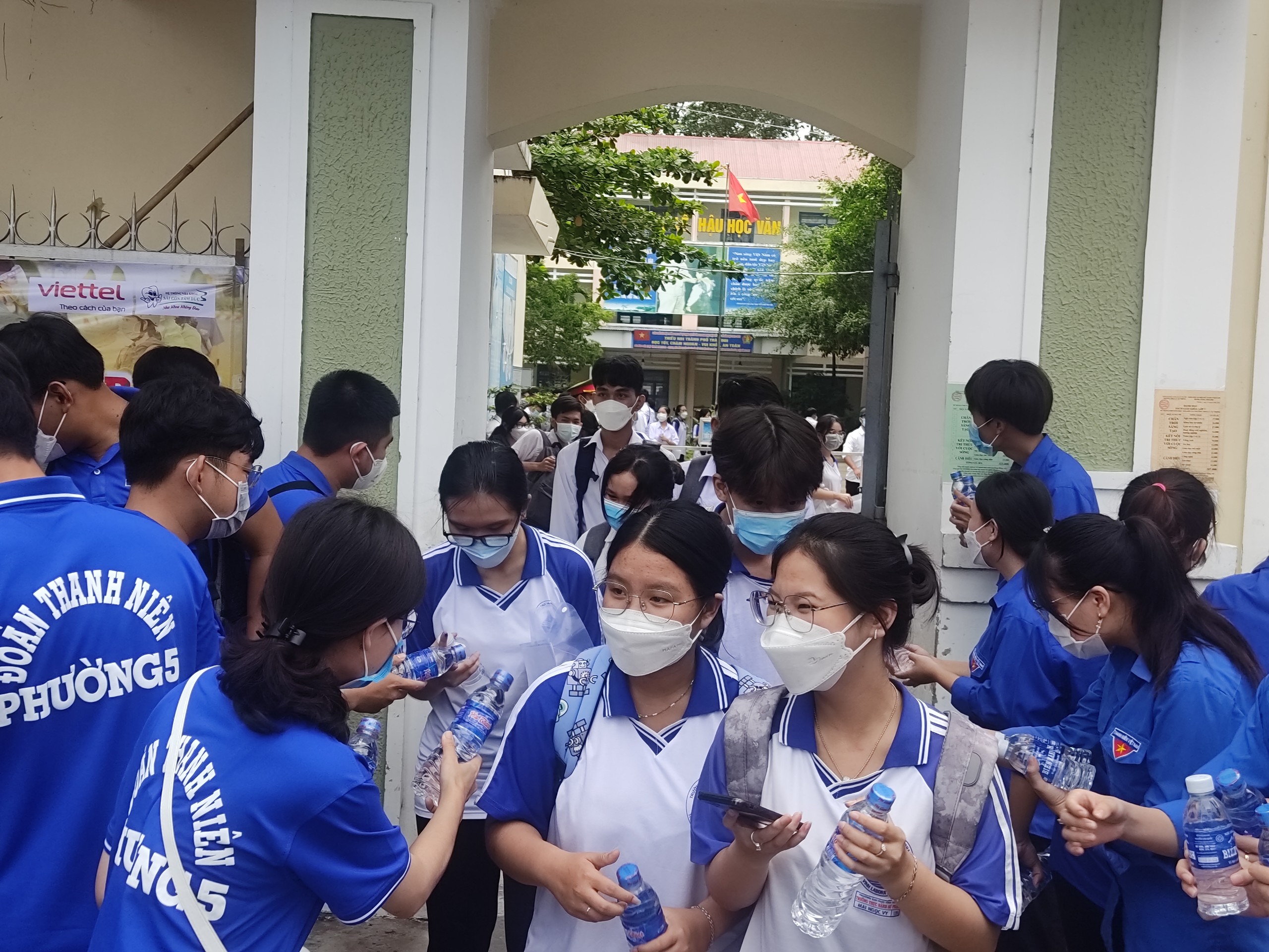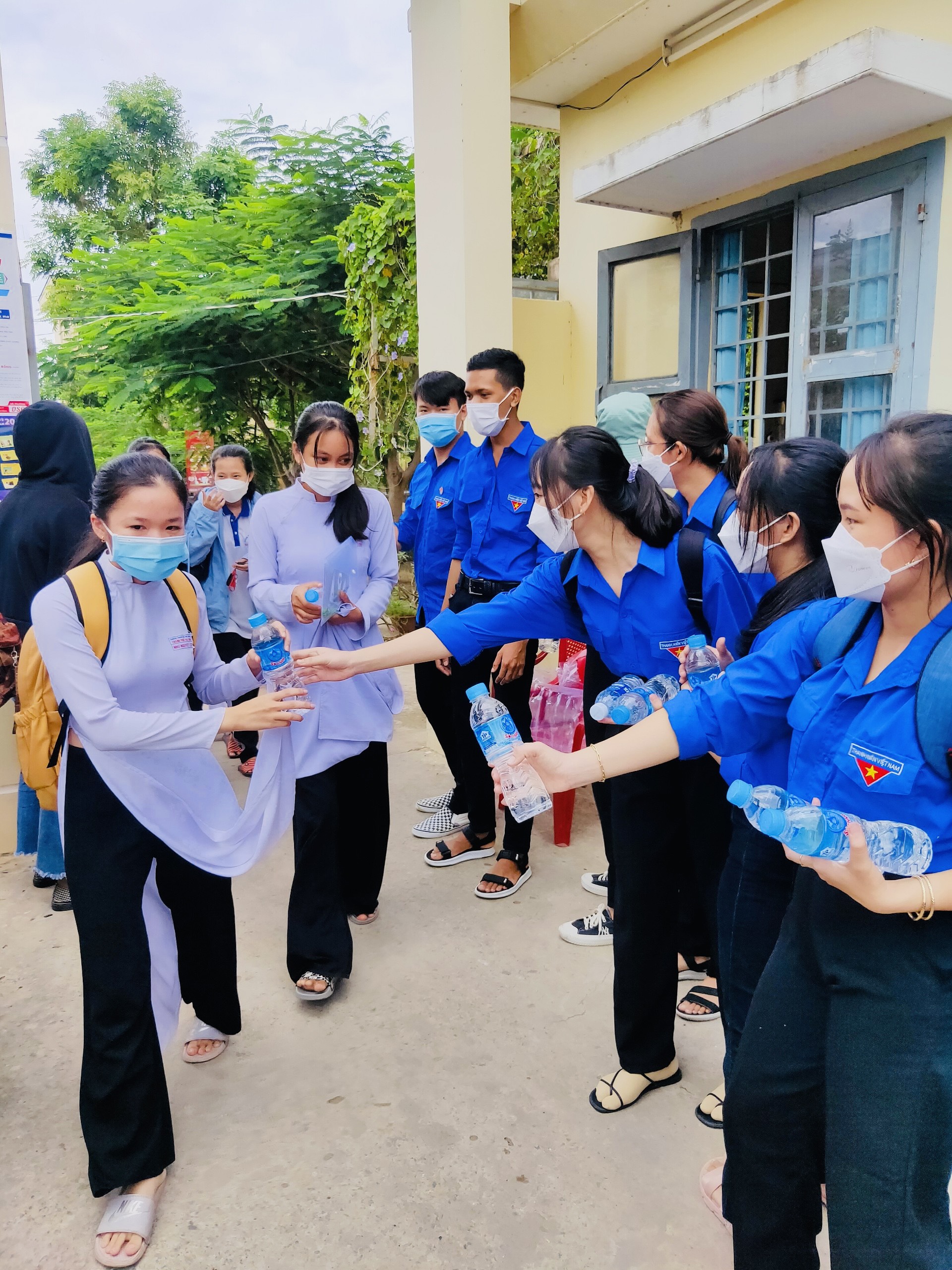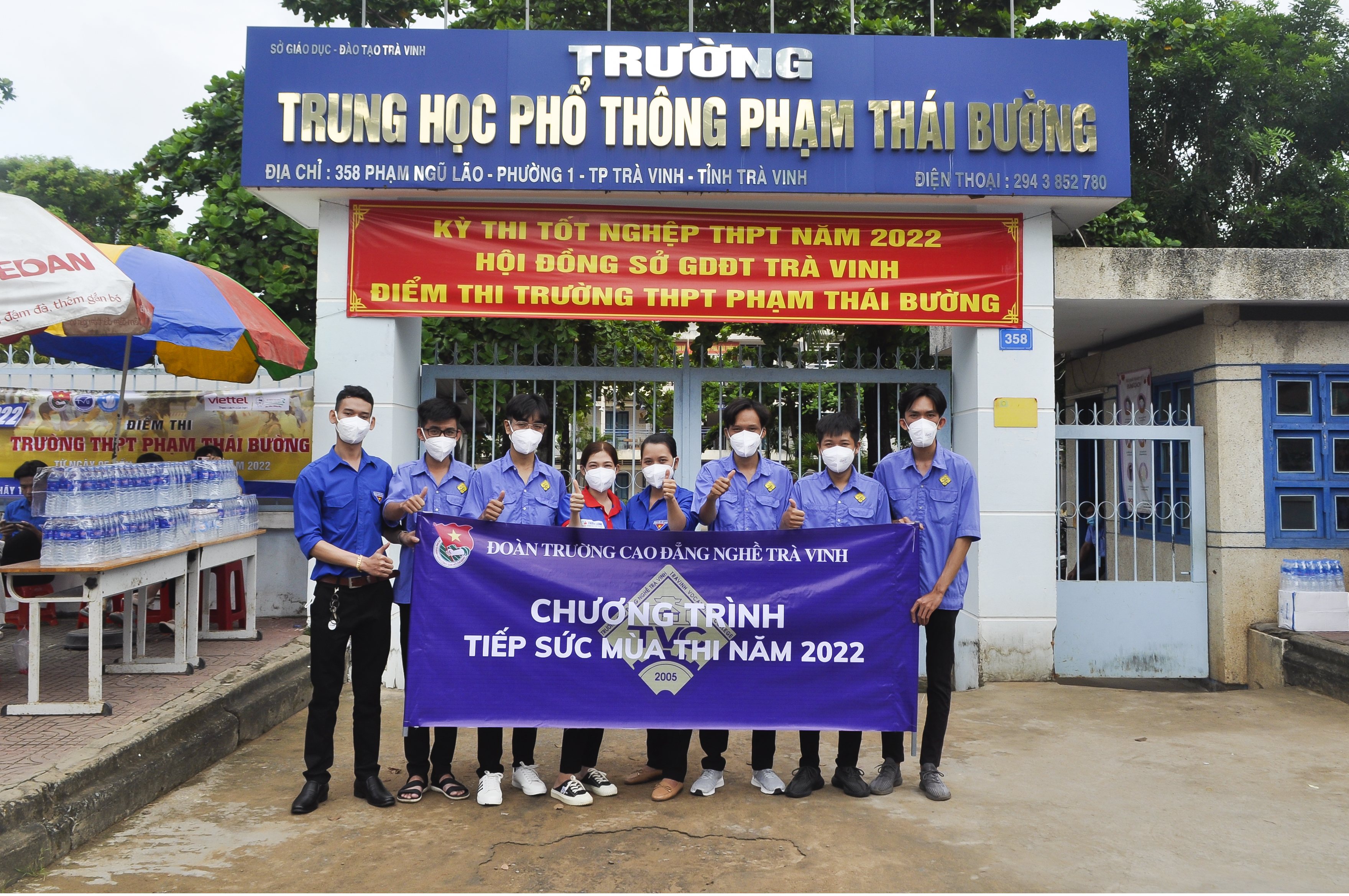 Đội thanh niên tình nguyện “Tiếp sức mùa thi” của Đoàn trường Cao đẳng Nghề Trà Vinh tại trường THPT Phạm Thái Bường