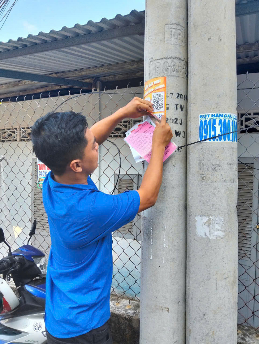 Đoàn viên tháo gỡ các biển quảng cáo