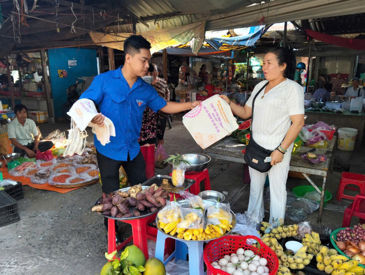 Bên cạnh đó, đoàn viên thanh niên còn cấp phát 100 túi sinh thái cho người dân, khuyến khích sử dụng sản phẩm thân thiện với môi trường thay thế túi nilon. Đồng thời tuyên truyền, nâng cao nhận thức cho người dân về bảo vệ môi trường, hướng đến một đô thị xanh, văn minh và bền vững.