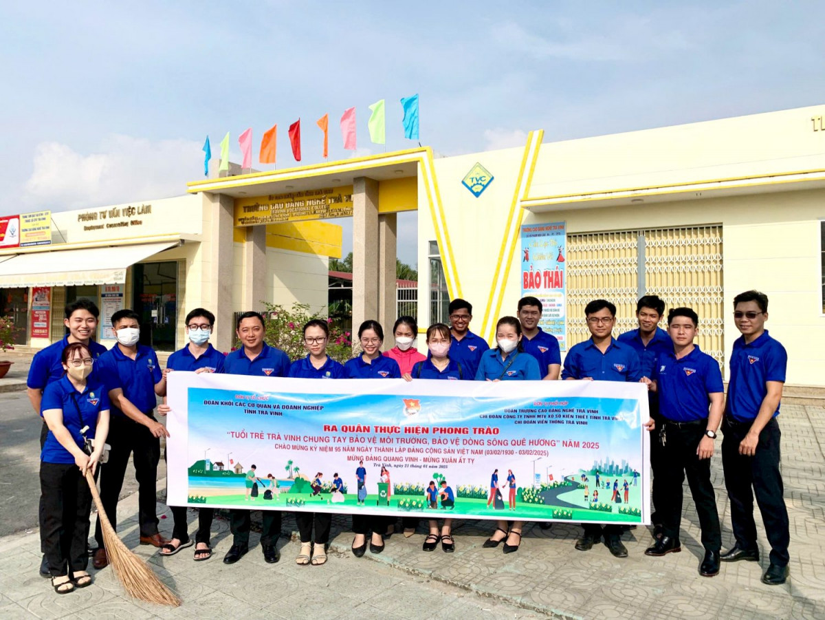 Chiều ngày 21/01/2025, Ban Thường vụ Đoàn khối tổ chức và chỉ đạo đồng loạt các cơ sở đoàn trực thuộc ra quân hưởng ứng thực hiện phong trào “Tuổi trẻ Trà Vinh chung tay bảo vệ môi trường, bảo vệ dòng sông quê hương”. Đợt này, Ban Thường vụ Đoàn khối chọn: Đoàn trường Cao đẳng Nghề Trà Vinh; Chi đoàn Công ty TNHH MTV Xổ số kiến thiết tỉnh Trà Vinh và Chi đoàn Viễn thông Trà Vinh làm điểm ra quân cấp Đoàn khối. Hoạt động thu hút trên 100 doàn viên thanh niên tham gia.