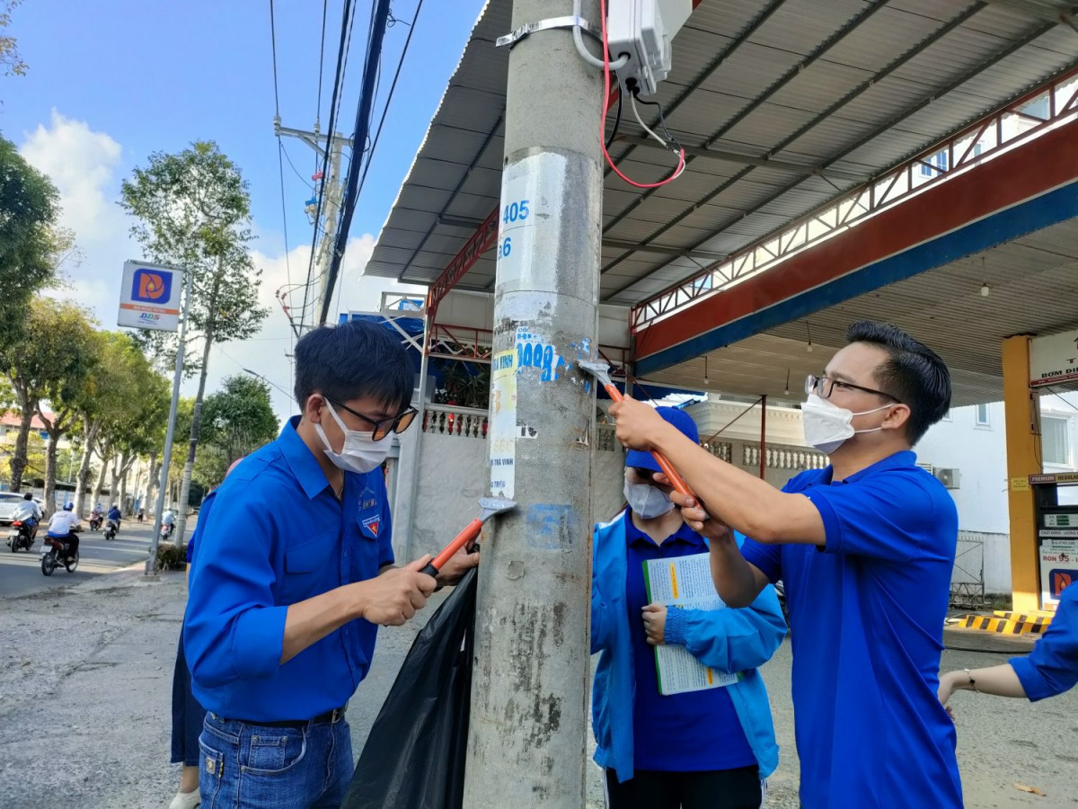Đoàn viên xóa các tờ rơi không đúng quy định