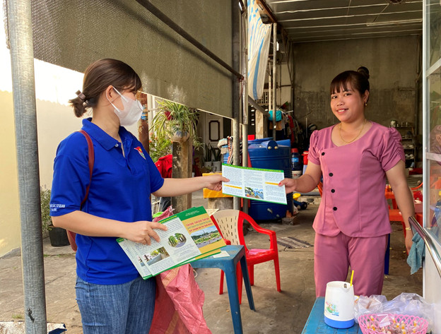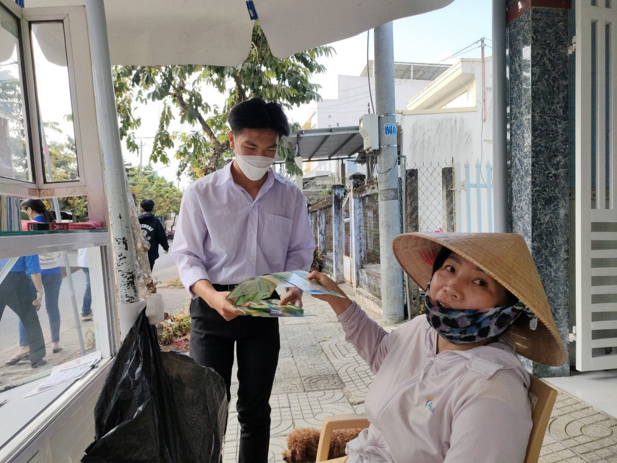 Đoàn viên phát tờ bướm tuyên truyền cho người dân