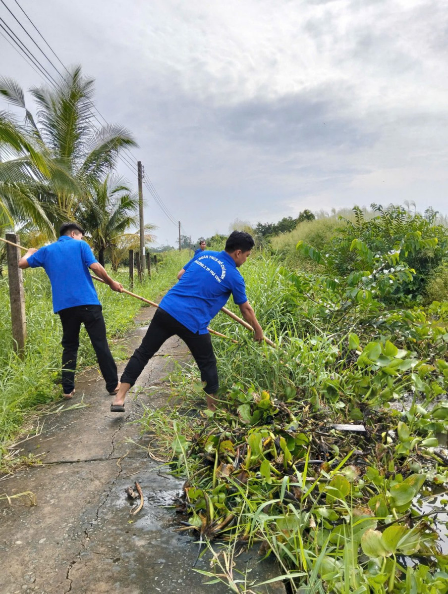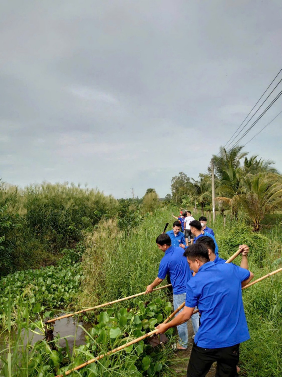 Tại đây, các bạn đoàn viên đã phối hợp với Đoàn Phường 7, TP. Trà Vinh tham gia vệ sinh cảnh quan môi trường, vớt lục bình khơi thông dòng chảy trên tuyến kênh khóm 9, phường 7, TP. Trà Vinh. Được biết đây là tuyến kênh có nhiều lục bình phát triển, dầy đặt làm ảnh hưởng đến sự lưu thông dòng chảy, giảm lượng nước đưa vào đồng, các phương tiện ghe, xuồng ra vào khó khăn làm ảnh hưởng đến đời sống và sự phát triển nông nghiệp tại xã.